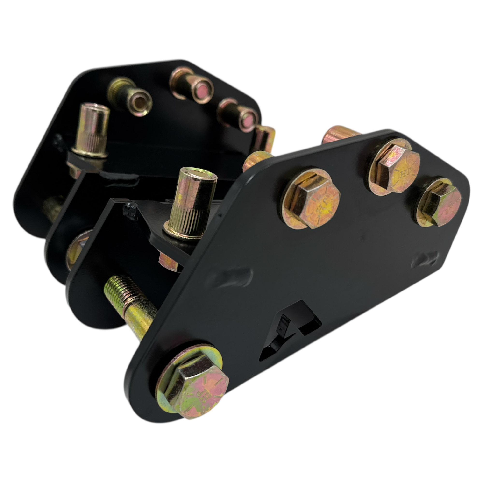 The Apoc Rivnut Frame Mount is built for serious strength and easy installation on boxed frames. Designed to work with our traction bar kits, it bolts directly to the truck’s frame using heavy-duty rivnuts—no welding required. Precision-cut from thick-gauge steel and powder-coated for durability, this mount delivers a rock-solid connection that stands up to heavy torque, towing, and hard launches.